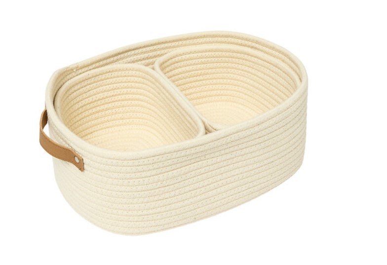 - Cestino Duo 2° misura in poliestere crema, dimensioni 35x25x12 cm.