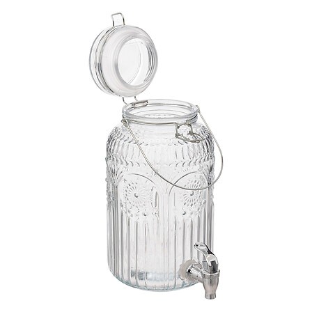 Il dispenser per bevande Mona da 3,8 litri è l’accessorio ideale per servire acqua, succhi, tè freddi o cocktail con stile e praticità. Realizzato in vetro trasparente di qualità, unisce resistenza ed eleganza, perfetto per tavole imbandite, feste o buffet. Con dimensioni compatte (L. 21,5 x P. 16 x H. 29 cm) e un peso di 1,539 kg, è stabile e facile da utilizzare. Il design trasparente permette di vedere il contenuto, rendendo le presentazioni più accattivanti.