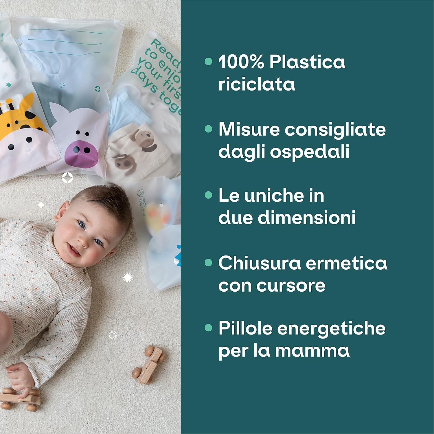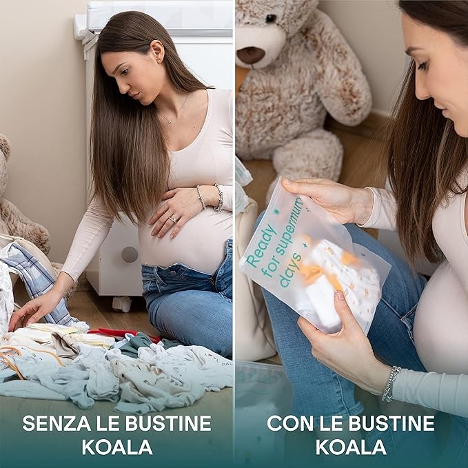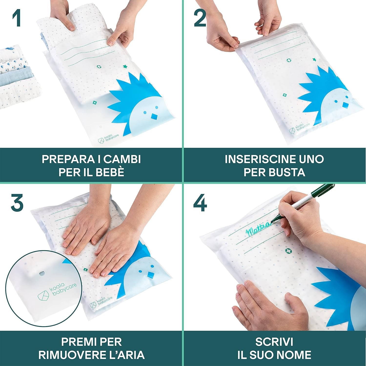 Il kit corredino neonato Koala Babycare, composto da 12 bustine in due dimensioni, è perfetto per organizzare tutto il necessario per il cambio del tuo bambino o della tua bambina sia in ospedale che all’asilo. Progettato per offrire praticità e igiene, ogni bustina consente di separare gli indumenti e gli accessori del piccolo, garantendo tutto l'occorrente sempre a portata di mano e ben protetto. Un’idea regalo utile e apprezzata per la lista nascita, ideale per neomamme e neopapà alla ricerca di soluzioni pratiche e di qualità.