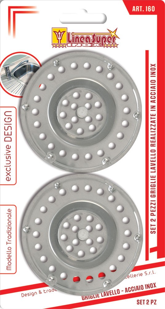 - Griglie da lavello in acciaio inox per proteggere le tubature dal cibo e detriti.
