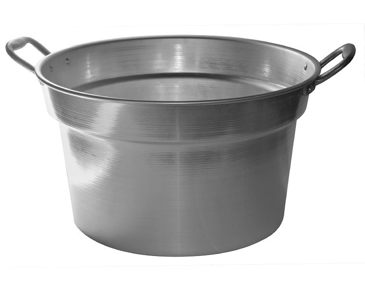 Caldaia in alluminio pesante. Completa di manici. Adatta per la preparazione della conserva in grandi quantità. Grazie al coperchio (non incluso), i vapori rilasciati dai liquidi bollenti e dai cibi rimangono all'interno della pentola. Utile anche per la bollitura e la sterilizzazione di vasetti. Ha ottima conducibilità termica che garantisce temperatura costante.
