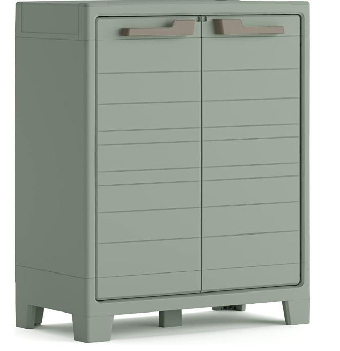Aggiungi un tocco di stile all'organizzazione dei tuoi spazi. Planet Outdoor Basso combina un design dalle linee morbide con una struttura robusta, resistente all'acqua e ai raggi UV. Dotato di chiusura con predisposizione per il lucchetto, di 2 ripiani regolabili e di una base rinforzata con una portata massima di 30 Kg ciascuno