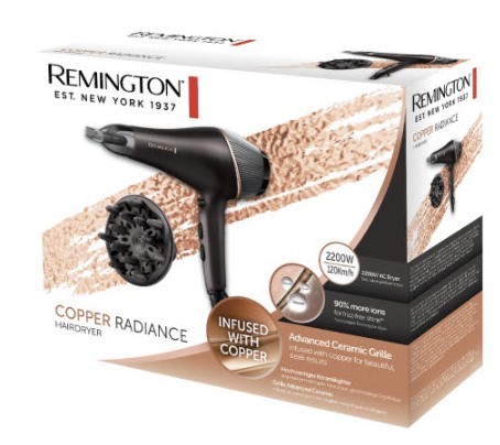 Il Remington PHON AC5700 è un asciugacapelli professionale da 2200 W, ideale per styling rapido ed efficace come in salone. La griglia in ceramica avanzata infusa con rame e il condizionamento motorionico AC generano fino al 90% in più di ioni, per capelli luminosi, morbidi e senza effetto crespo.