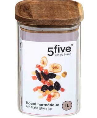 5five vaso in vetro con coperchio in acacia trasparente 1 L