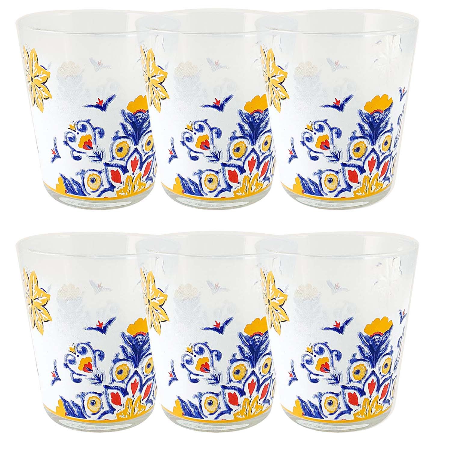 Ogni bicchiere racconta una storia fatta di luce, mare e tradizione, grazie a una decorazione che evoca le atmosfere rilassate delle coste italiane. Le tonalità brillanti si mescolano in motivi floreali e geometrici, rendendo ogni pezzo unico ma armonioso nel contesto del set. Ideali per l’uso quotidiano, ma perfetti anche per occasioni conviviali più ricercate.
