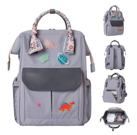 - Zaino fasciatoio multifunzione di colore grigio, ideale per genitori dinamici