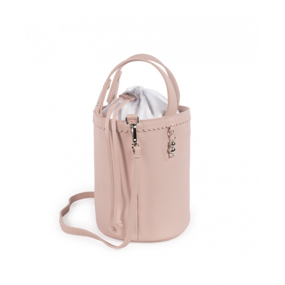 La Borsa Bucket Icon di Pasito a Pasito è l’accessorio perfetto per aggiungere un tocco di eleganza al passeggino del tuo bambino. Realizzata in polipelle rosa pastello con un raffinato bordo festonato e un dolce ciondolo a forma di orsetto in metallo, unisce stile e funzionalità in un unico prodotto.