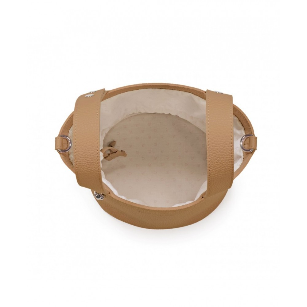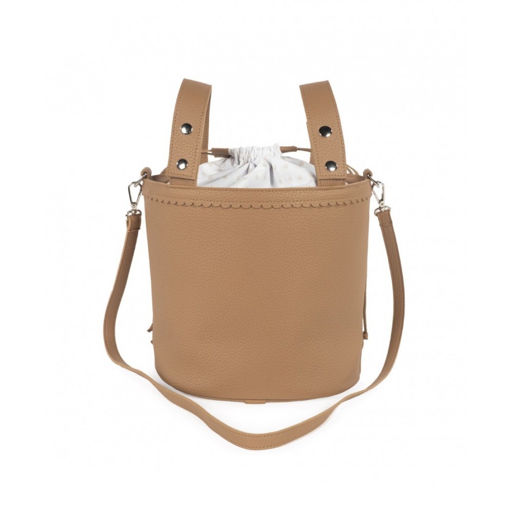 La Borsa Bucket Icon di Pasito a Pasito è l'accessorio perfetto per i genitori che cercano eleganza e funzionalità. Realizzata in polipelle di alta qualità color caramello, con bordo festonato e un adorabile pendente metallico a forma di orsetto, questa borsa è tanto stilosa quanto pratica.