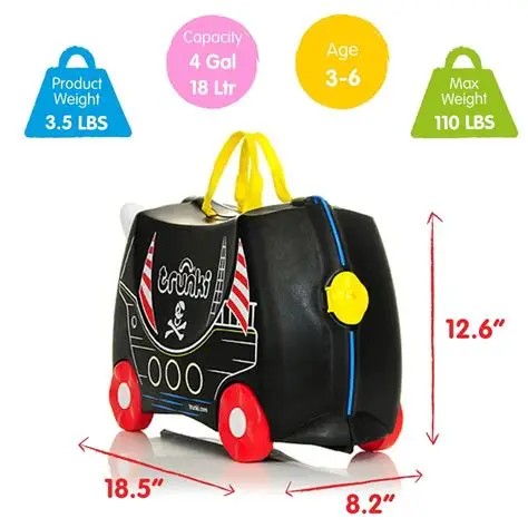 Salpa per nuove avventure con la Trunki Pirate Black, la valigia cavalcabile in stile pirata perfetta per ogni piccolo esploratore dei sette mari! Con il suo design nero elegante e dettagli a tema pirata, questa valigetta è l’alleata ideale per rendere ogni viaggio divertente, pratico e a misura di bambino.