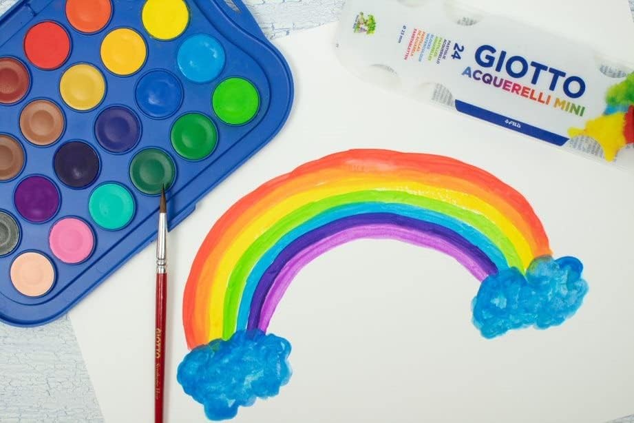 La confezione Giotto Acquerelli include 24 pastiglie di tempera ad acquerello dal diametro di 30 mm e un pennello di alta qualità. I colori sono intensi, facili da sfumare e perfetti per dipingere su carta, cartoncino e superfici creative. Grazie alla formulazione a base d'acqua, sono semplici da usare e ideali per bambini, studenti e appassionati di pittura. La pratica confezione con coperchio richiudibile consente di conservarli e trasportarli facilmente.
