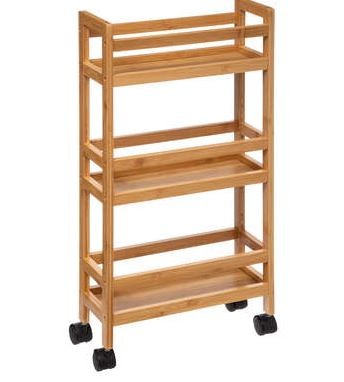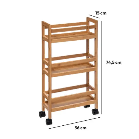 Realizzato in resistente bamboo, questo carrello è sia elegante che robusto, garantendo una lunga durata nel tempo. I tre piani offrono la possibilità di suddividere gli oggetti in base alle proprie esigenze, rendendo più semplice e comoda l'organizzazione degli spazi.