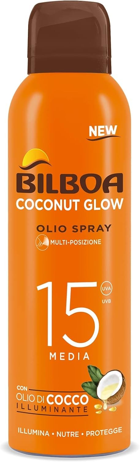 Bilboa, BOV Solare Coconut Glow SPF 15, Crema Solare Spray con Olio di Cocco e Vitamina E, 150 ml