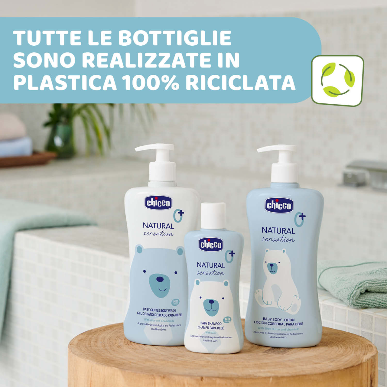 - Formula delicata con Aloe e Camomilla, ideale per la pelle sensibile del bambino.