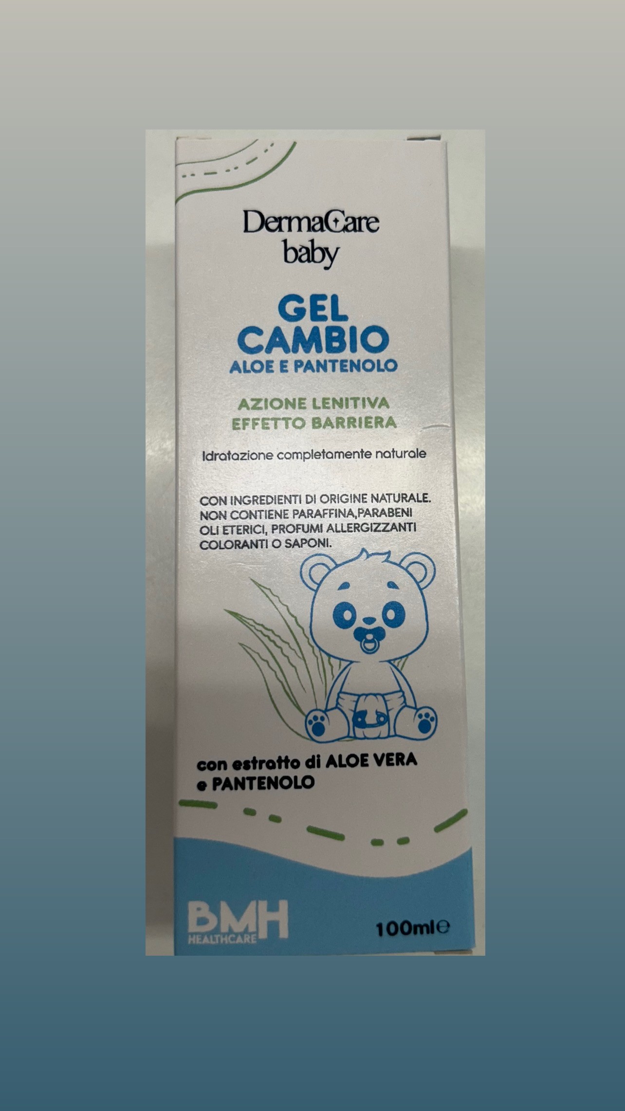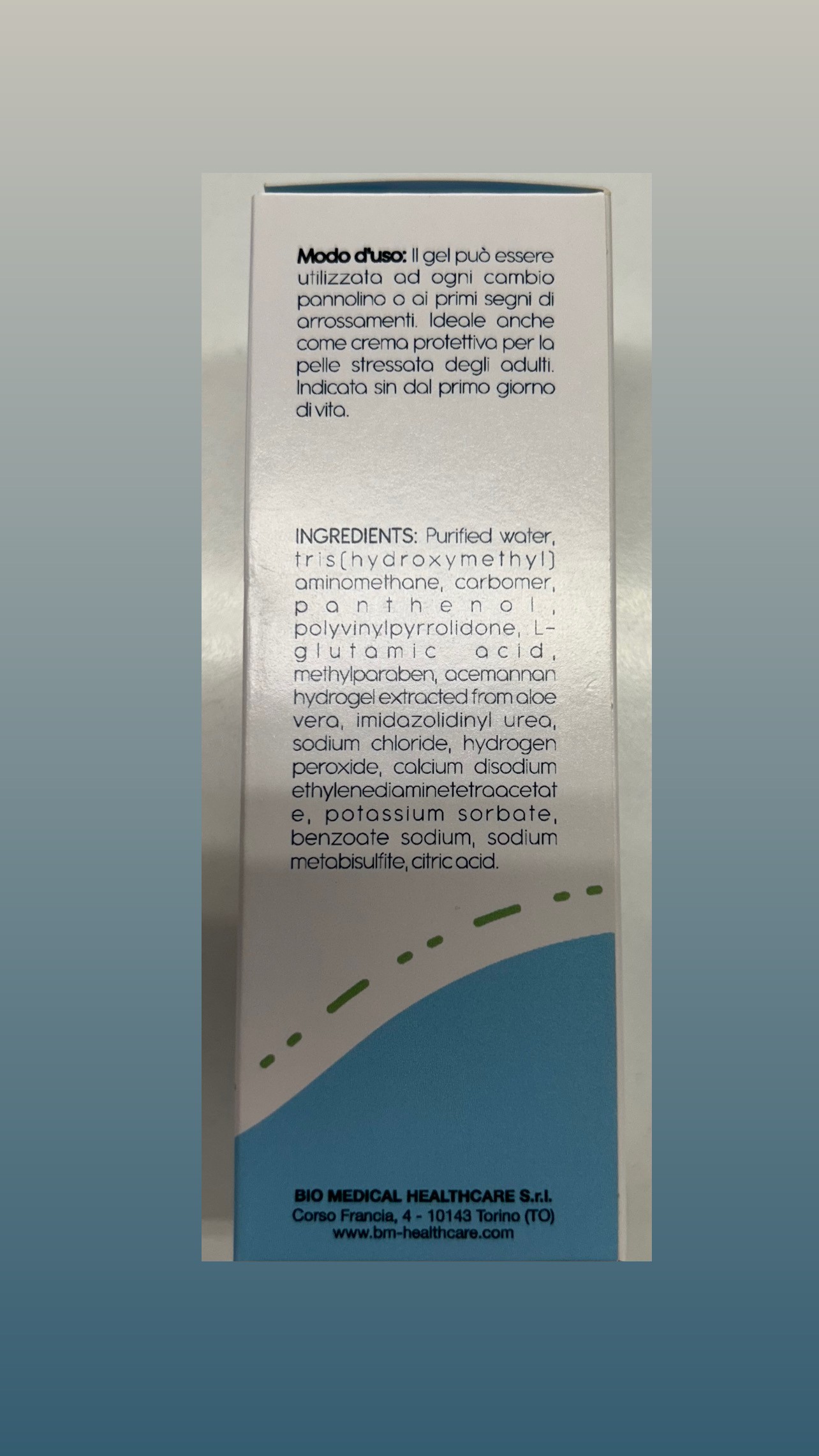 Gel cambio pannolino con Aloe e Pantenolo, ideale per la pelle delicata dei bambini.