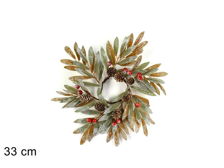 DIETROPORTA TONDO FOGLIE INNEVATE E BACCHE 33CM BMD2006-RING