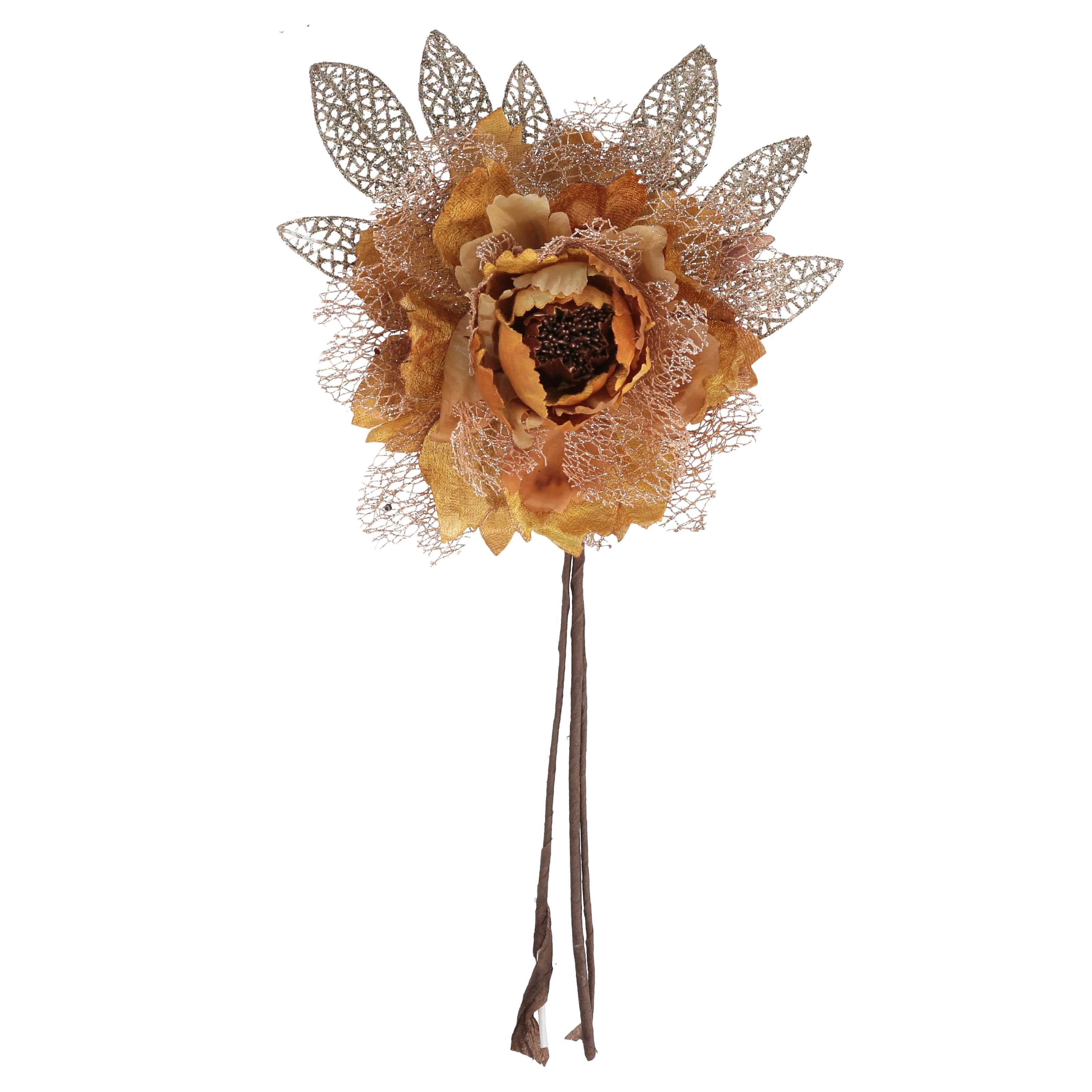 FIORE PEONIA TESSUTO ORO 18X37CM