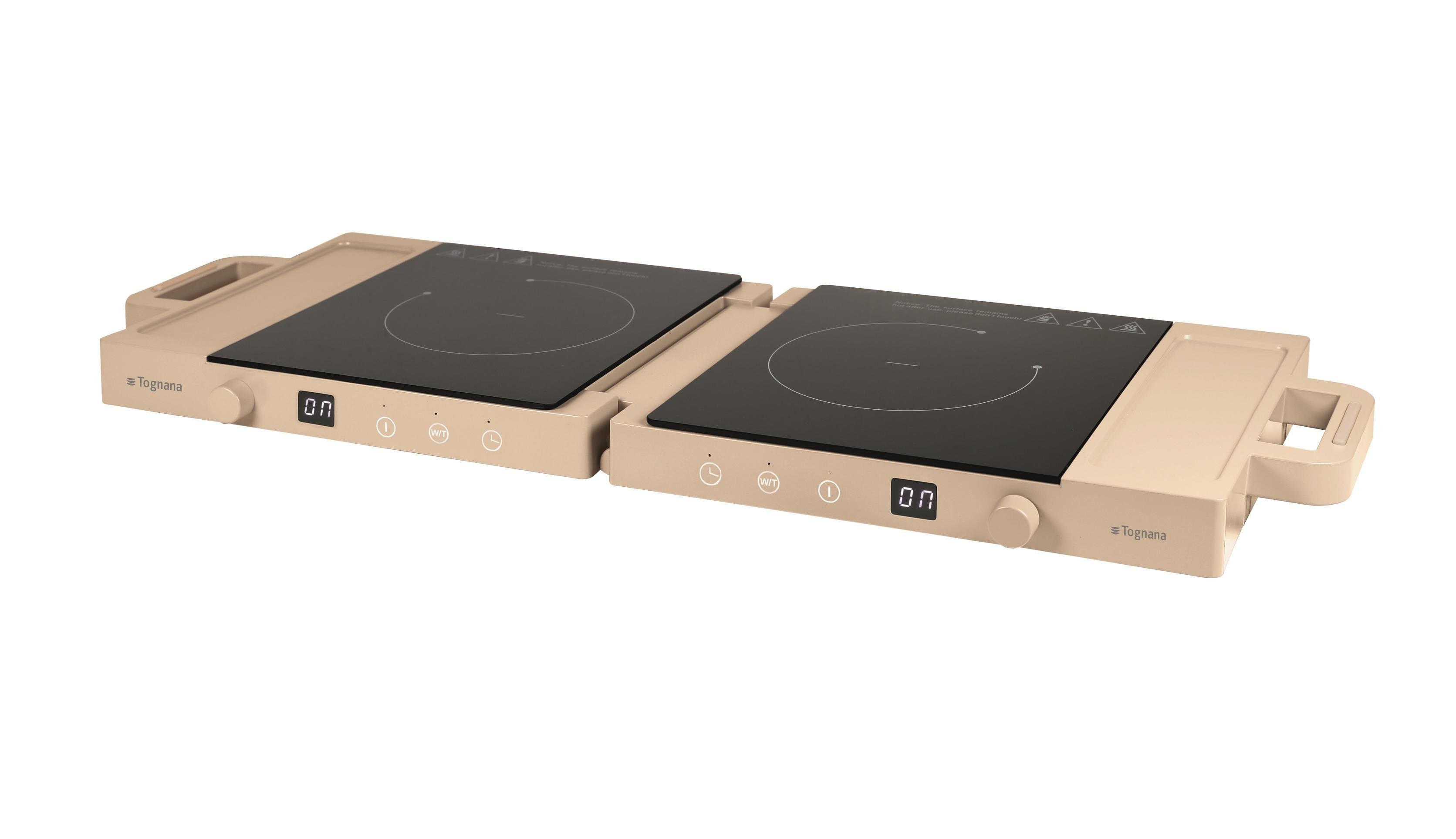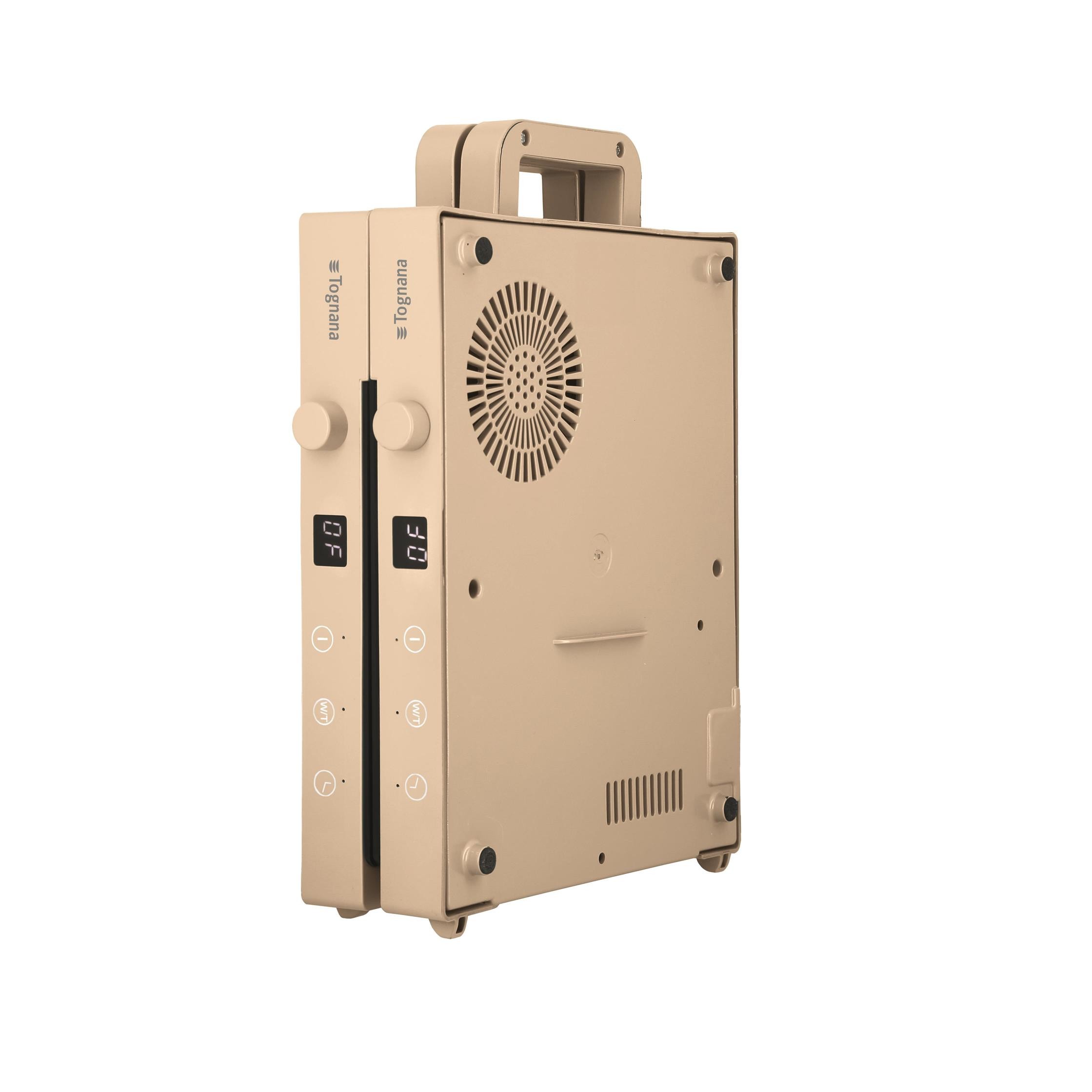 La Piastra a Induzione Doppia Portatile Iridea Champagne unisce potenza, design e praticità in un unico elettrodomestico. Le due piastre in vetro temperato da 255x216 mm garantiscono una distribuzione uniforme del calore, consentendo di cucinare più pietanze contemporaneamente.