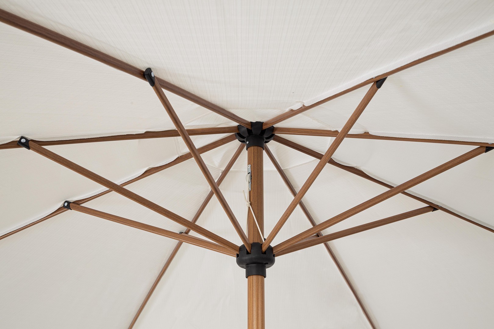 L'Ombrellone Palinuoro 3mt Bianco/Naturale con Snodo è la scelta ideale per proteggerti dal sole in giardini, terrazzi o verande. La struttura in acciaio trattato con finitura effetto legno e il palo da Ø38mm con snodo zincato offrono robustezza e praticità, permettendo di inclinare facilmente l'ombrellone. Il telo in poliestere bianco (180gr/m²) è resistente e facilmente pulibile, mentre le 8 stecche 9x16mm assicurano stabilità anche con vento. Completo di carrucola e camino antivento, ma senza base. Ideale per creare una zona ombreggiata perfetta per il relax all'aperto.