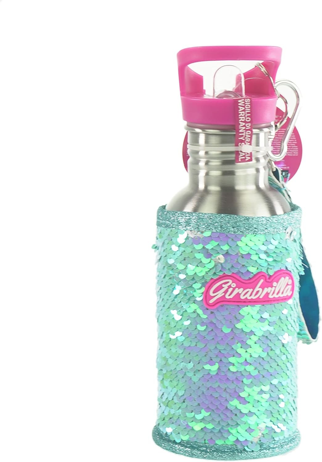 La Girabrilla Eco Bottiglia da 500 ml in acciaio è una scelta ecologica e stilosa per le tue bevande. Con un rivestimento di paillettes reversibili che cambia colore e una maniglia in paillettes, questa borraccia è tanto pratica quanto elegante. Il moschettone multiuso consente di agganciarla facilmente allo zaino, mentre il tappo magenta glitterato con cannuccia estraibile aggiunge un tocco di praticità. Costruita con materiali BPA free e sicuri, è adatta per vari liquidi e può essere lavata in lavastoviglie.