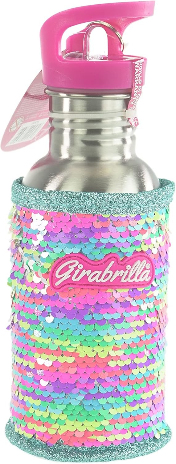 Design Unico: La Girabrilla Eco Bottiglia da 500 ml è realizzata in acciaio e presenta uno scintillante rivestimento di paillettes reversibili che cambiano colore quando le accarezzi.