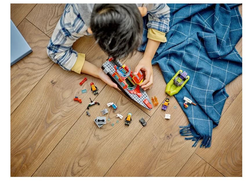 - Barca dei pompieri giocattolo: ore di divertimento infuocato ricco di azione ti attendono con questo playset Barca di soccorso antincendio LEGO® City (60373)