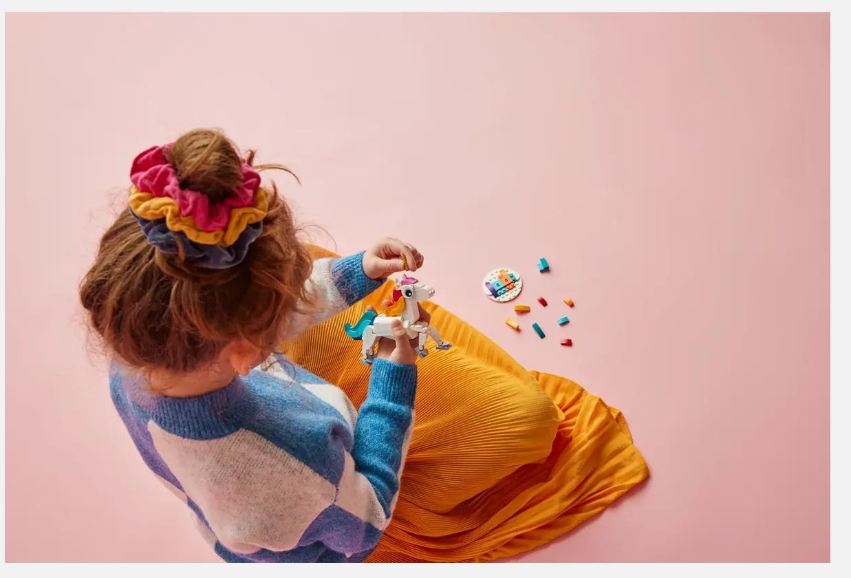 - Include una varietà di mattoncini colorati per personalizzare l'aspetto del unicorno
