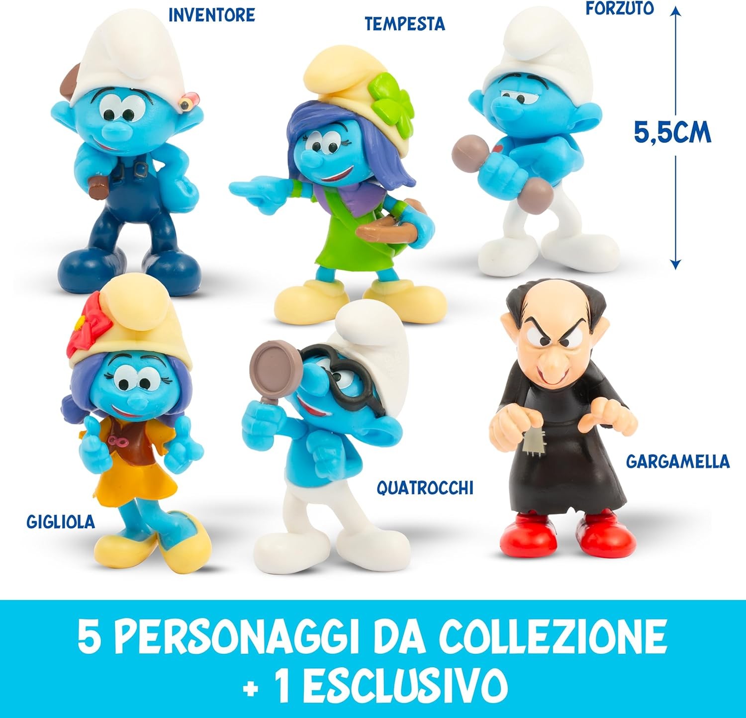 - Set con 6 personaggi fedeli al film, inclusa la figura esclusiva di Gargamella