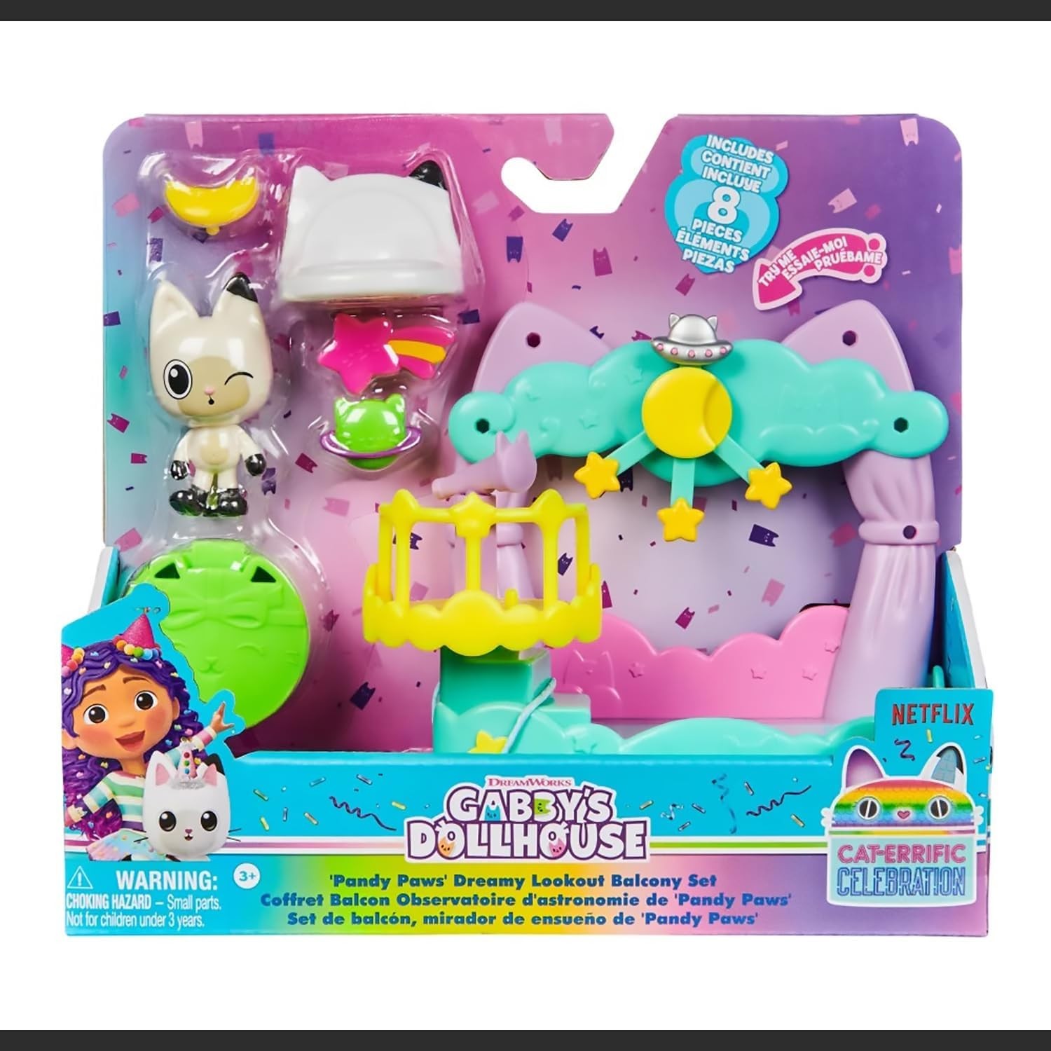 Decorazioni Balcone: Il "Gabby's Dollhouse Balcony Decoration Assortimento" offre una varietà di accessori e decorazioni per il balcone della Casa delle Bambole di Gabby, aggiungendo dettagli affascinanti all'ambiente di gioco.