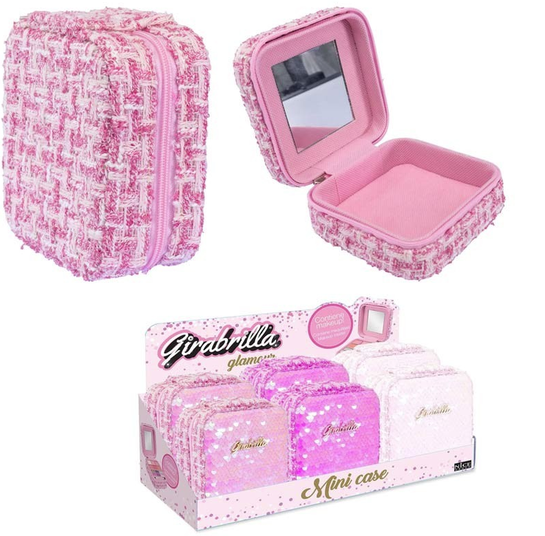 La Girabrilla Mini Case è una trousse compatta e scintillante, decorata con pailettes reversibili e tessuto tweed, perfetta per le bambine che amano truccarsi e divertirsi con la fantasia. All’interno contiene un set di trucchi assortiti, tra cui ombretti e lucidalabbra, insieme a uno specchio e un applicatore. Tutti i prodotti sono realizzati con materiali sicuri, testati, atossici e privi di parabeni, facilmente rimovibili con acqua e detergente delicato. Ogni confezione contiene una mini trousse in un colore a sorpresa tra quelli disponibili.