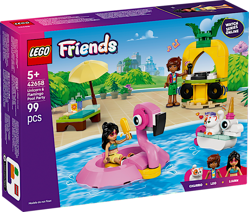 Fai tuffare i piccoli nel divertimento estivo con il set LEGO Friends 42658 – Unicorn & Flamingo Pool Party.