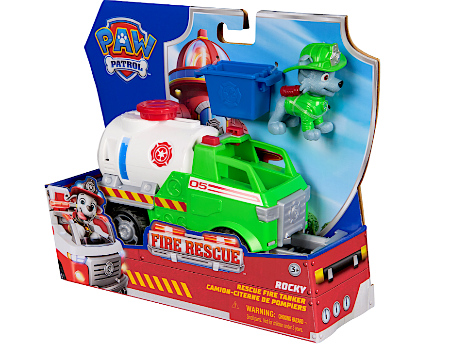 Include la figura di Rocky in uniforme da vigile del fuoco.