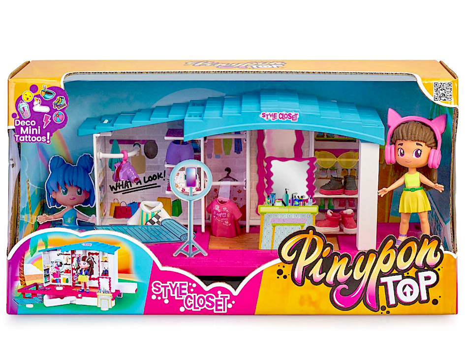 Pinypon Top Style Closet è il playset dedicato alla moda e alla creatività che permette di entrare nel mondo delle stiliste in miniatura. All’interno del guardaroba si trovano numerosi vestiti, scarpe e accessori intercambiabili: mescola e abbina per creare stili sempre nuovi e originali, dando libero sfogo alla fantasia. Il set comprende una bambola Pinypon con braccia e gambe snodate, il volto double face dalle espressioni diverse e mini tatuaggi decorativi, affinché ogni storia possa essere unica. La presenza della toletta per la beauty routine e della piscina idromassaggio arricchisce il gioco, simulando un vero backstage di moda e relax dopo lo shooting fotografico.