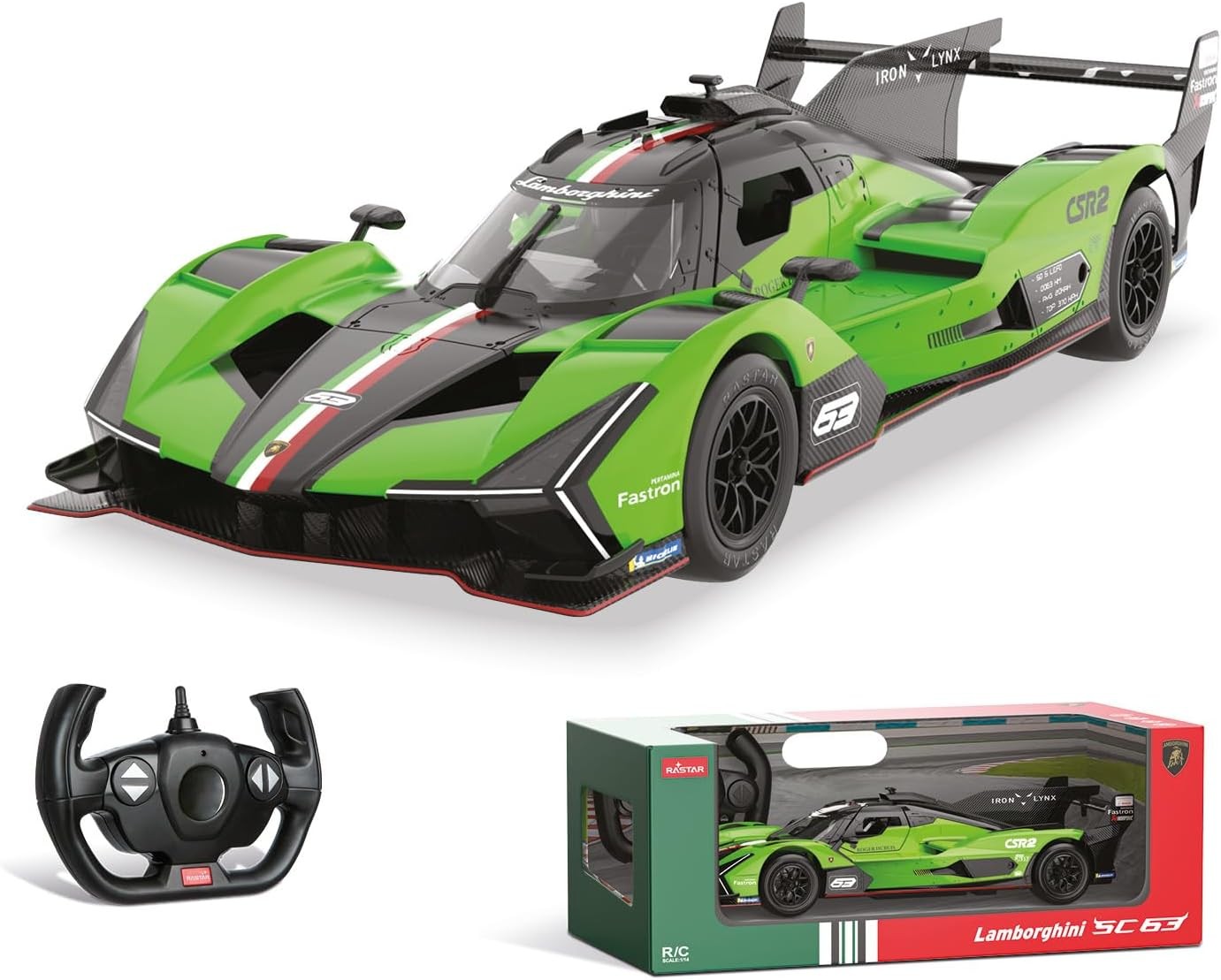 La Lamborghini SC 63 Le Mans Radiocomandata Scala 1:14 di Mondo Motors è una fedele riproduzione della celebre supercar da competizione italiana, simbolo di potenza e design futuristico. Il modello in scala 1:14 è realizzato con materiali di alta qualità, con scocca resistente agli urti, dettagli accurati e design aerodinamico, garantendo un’esperienza di guida realistica e coinvolgente.