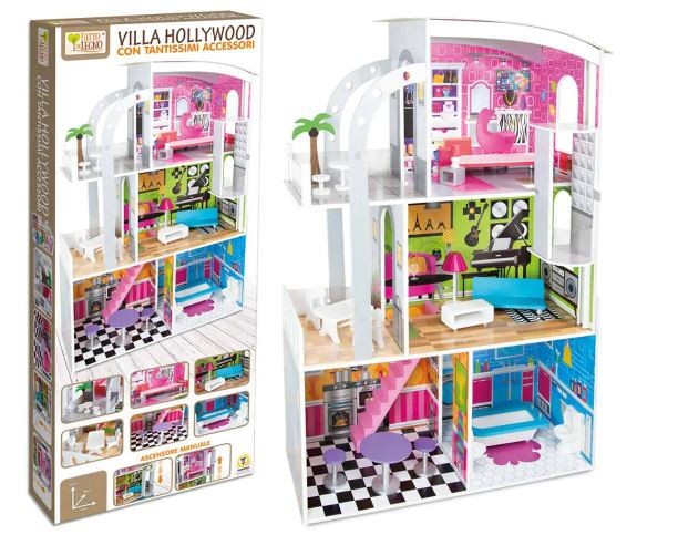Scopri il fascino e la magia della Villa Hollywood Fatto di Legno, una meravigliosa casa delle bambole che trasforma il gioco in un’avventura affascinante. Questa villa in legno, alta 110 cm, è perfetta per stimolare la fantasia dei più piccoli e offrirgli ore di divertimento senza fine. Con il suo design unico e dettagli curati, è l'ideale per ogni bambina che sogna di avere una casa in miniatura tutta per sé.