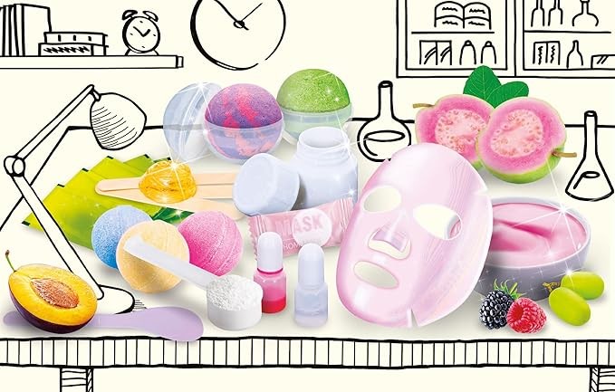 I'm a Genius Laboratorio di Routine di Bellezza è un kit completo che consente ai bambini di prendersi cura di sé in modo sicuro e divertente, proprio come in un vero centro benessere. Il set include tutti gli strumenti necessari per realizzare maschere facciali, bombe da bagno e altri prodotti cosmetici, stimolando la creatività e l'apprendimento delle nozioni di fisica e chimica. Grazie al manuale illustrato, i piccoli scienziati possono seguire le istruzioni passo-passo per creare i propri cosmetici, sviluppando manualità e imparando i segreti della cosmetica. Perfetto per combinare apprendimento e gioco, questo laboratorio rende la routine di bellezza un'esperienza educativa e sicura.