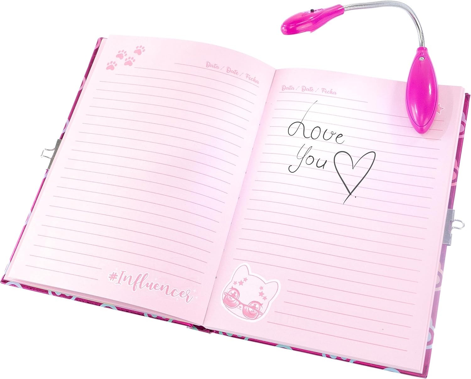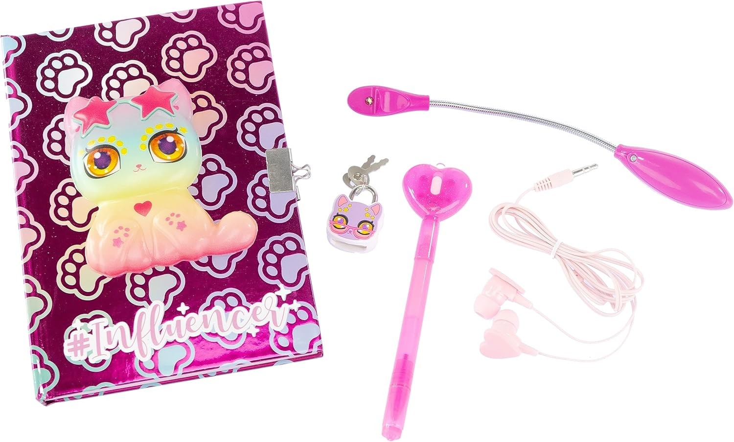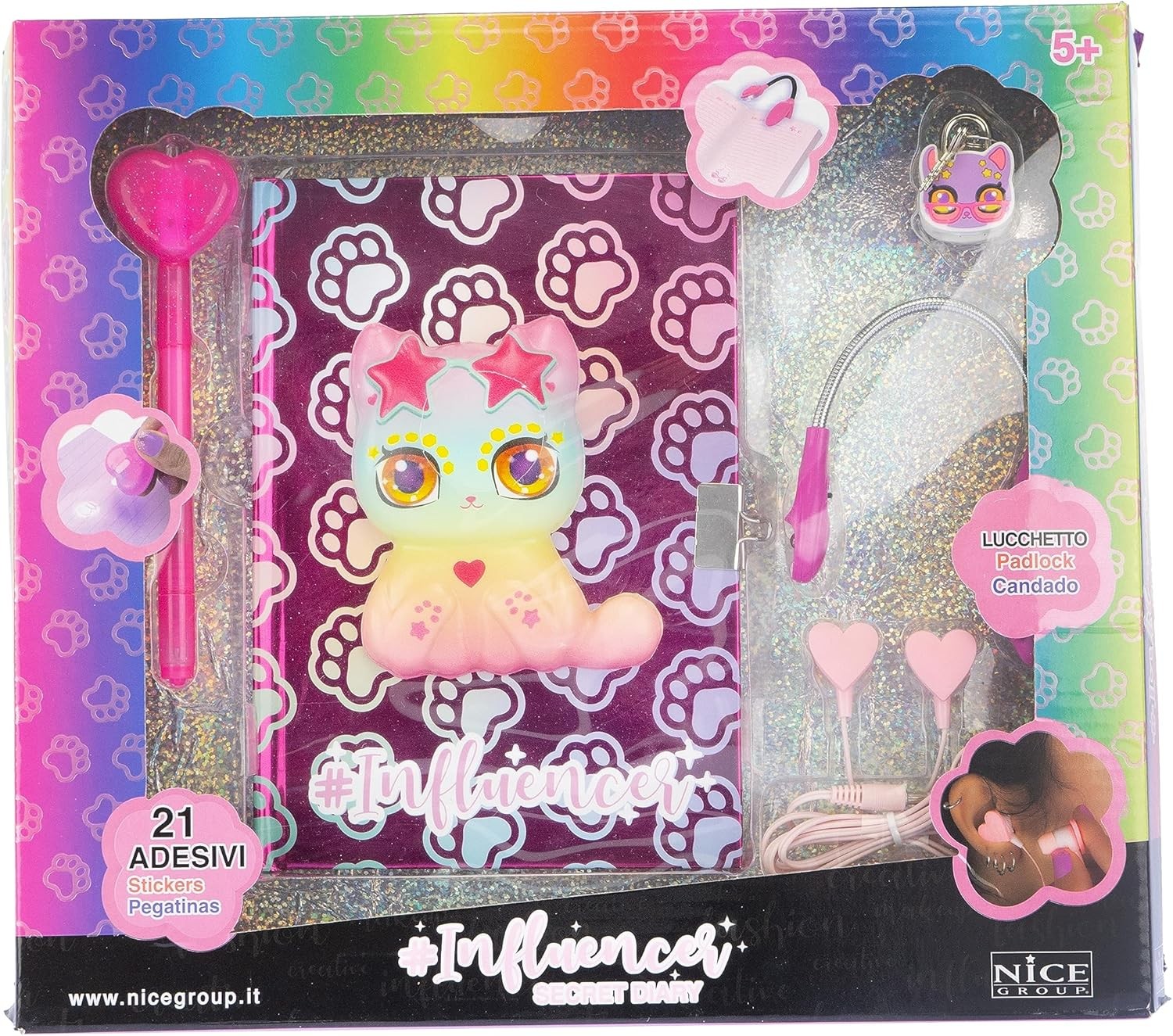 L'Influencer Diario Segreto di Nice Group è un diario unico nel suo genere, perfetto per bambini creativi e appassionati di scrittura. Con una copertina morbidosa e un adorabile adesivo squishy a forma di gatto in rilievo, questo diario non è solo bello da vedere ma anche piacevole da toccare. Le 80 pagine lisce sono decorate con righe rosa e piccoli disegni negli angoli, offrendo uno spazio accogliente per scrivere e disegnare. La confezione include anche una penna con luce sul cappuccio, una pinza con luce led per la lettura e un paio di cuffie auricolari, rendendolo un set completo e perfetto per stimolare la creatività e la fantasia dei più piccoli. Ottima idea regalo per ogni occasione.