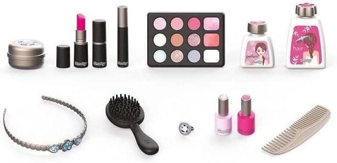 - 13 accessori inclusi: spazzola, pettine, smalti, rossetti e palette di ombretti per un’esperienza di gioco completa.