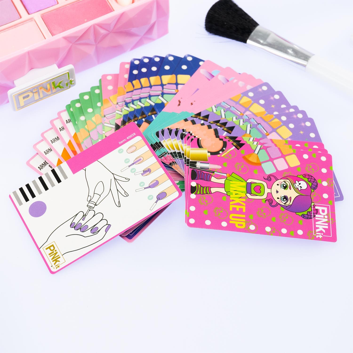 CONTENUTO: Specchiera con luci e sensore, palette makeup, accessori per capelli, gemme, 35 carte interattive multi-lingua e istruzioni.
