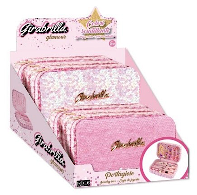 Il Girabrilla Portagioie, disponibile in colori assortiti su shopincasa.it, è una custodia elegante e brillante per custodire accessori e gioielli. Realizzato con materiali testati e sicuri, unisce il fascino delle paillettes reversibili al tessuto tweed per un effetto raffinato e moderno. All’interno presenta pratiche divisorie che permettono di organizzare anelli, orecchini, bracciali e piccoli oggetti. Compatto e leggero, è perfetto da portare in viaggio o da tenere nella cameretta per avere sempre i propri gioielli in ordine.