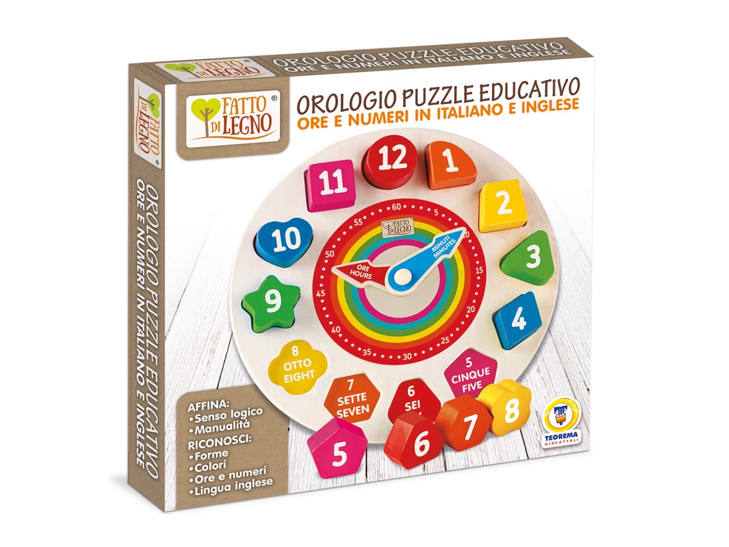 OROLOGIO PUZZLE EDUCATIVO, FATTO DI LEGNO