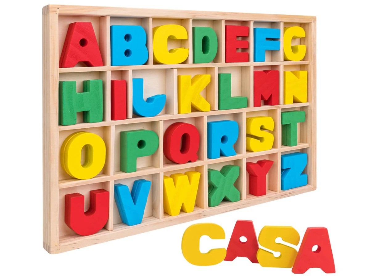 LETTERE ALFABETO IN LEGNO, 52 PEZZI, GIOCO EDUCATIVO, COLORATE