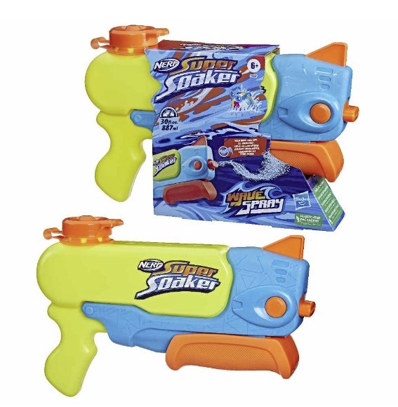 Un getto ondoso travolgente! Il blaster Nerf Super Soaker Water Spray rilascia un getto d'acqua che va su e giù con un fantastico movimento ondoso! Pompa il blaster e il beccuccio si muoverà creando il getto ondoso che inzupperà i tuoi avversari durante le sfide all'aperto. Lanciati in sfide all'aperto con il blaster Nerf Super Soaker Wave Spray. È un fantastico regalo per bambini e bambine di 6 anni e un divertente giocattolo ad acqua per adolescenti e adulti. Facile da usare! Riempi il serbatoio e pompa l'impugnatura avanti e indietro per iniziare a inzuppare amici e parenti. Ciascun serbatoio contiene fino a 887 ml. Il marchio Nerf Super Soaker alimenta il divertimento fin dal 1989 e continua a far inzuppare tutti con un'ondata di spruzzi! Lanciati in sfide con l'acqua all'aperto con i blaster Nerf Super Soaker! Nerf e tutte le proprietà correlate sono marchi commerciali di Hasbro.