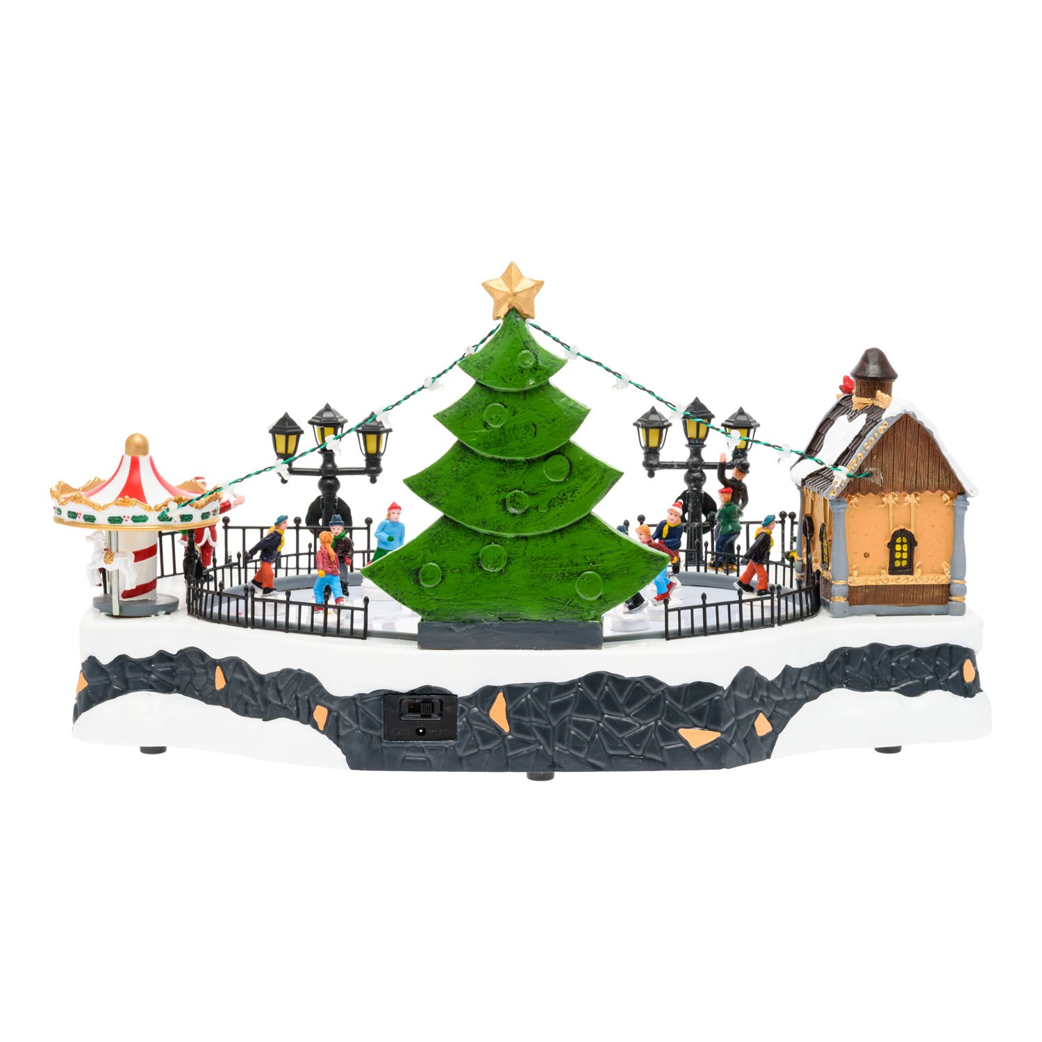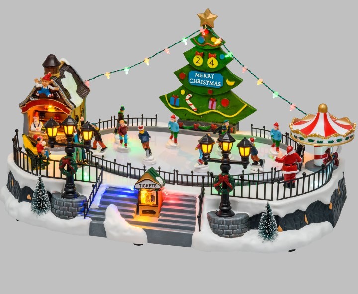 Villaggio Luna Park Lago Ghiacciato con Pattinatori e LED - Musica e Movimento H22cm