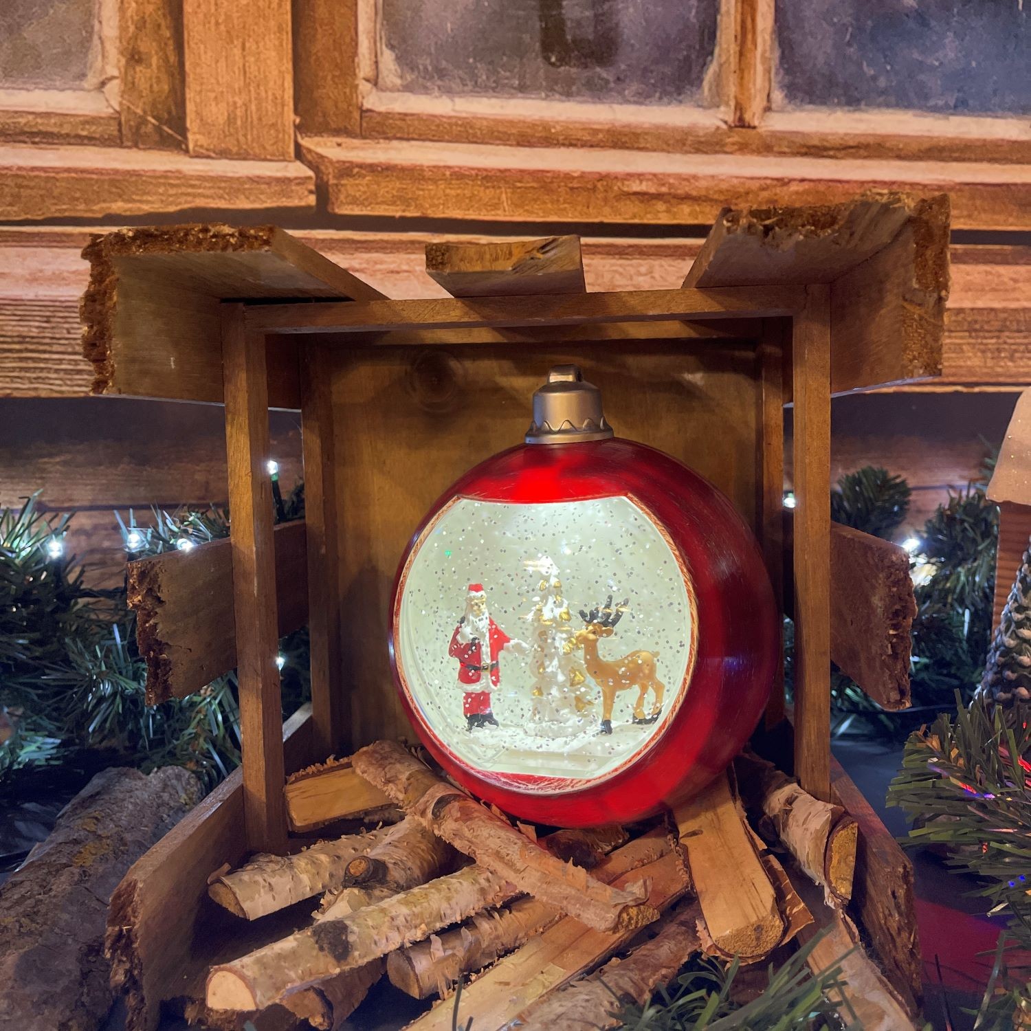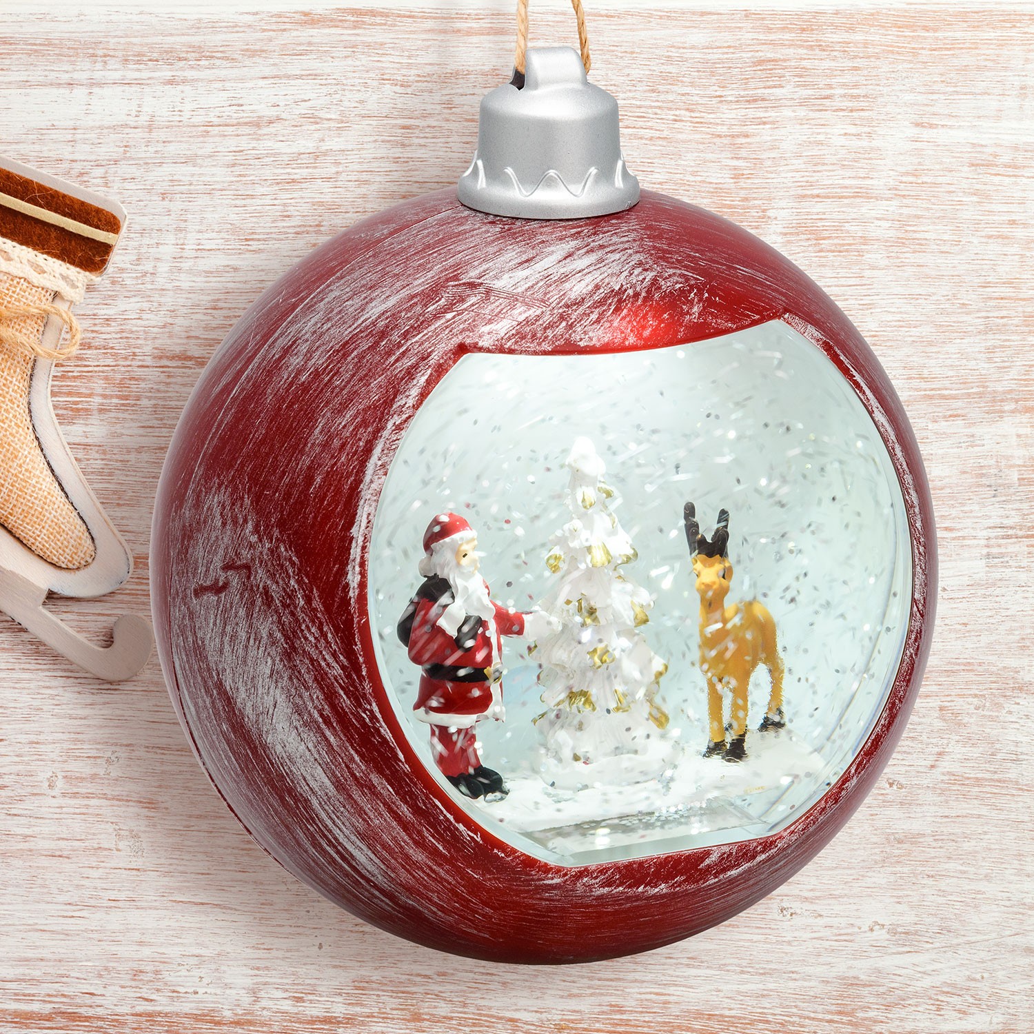 Sfera Natalizia con Glitter LED H16cm - Decorazione Luminosa in Rosso Antico