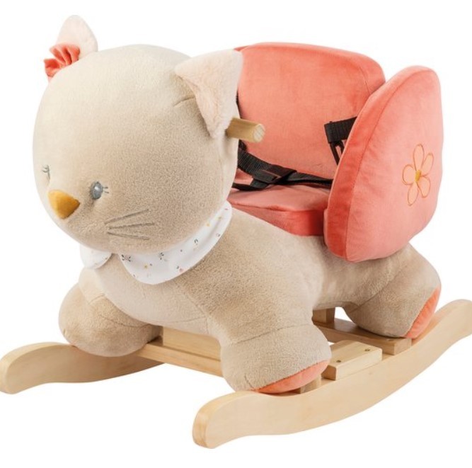 Il dondolo gatto è il perfetto compagno di giochi per il tuo bambino, un elemento che arricchisce ogni cameretta con il suo design accattivante. Con una seduta imbottita e braccioli che abbracciano il piccolo, offre comfort e sicurezza. Le maniglie in legno sono progettate per le mani dei più piccoli, mentre il viso affascinante del gatto, le morbide orecchie e la criniera invitano alla curiosità e all'esplorazione. Grazie alla sua ampia base e ai poggiapiedi, il dondolo garantisce stabilità, permettendo ai bambini di dondolarsi in sicurezza. Questo giocattolo stimola il senso dell'equilibrio e il divertimento, rendendolo un regalo ideale per il primo compleanno.