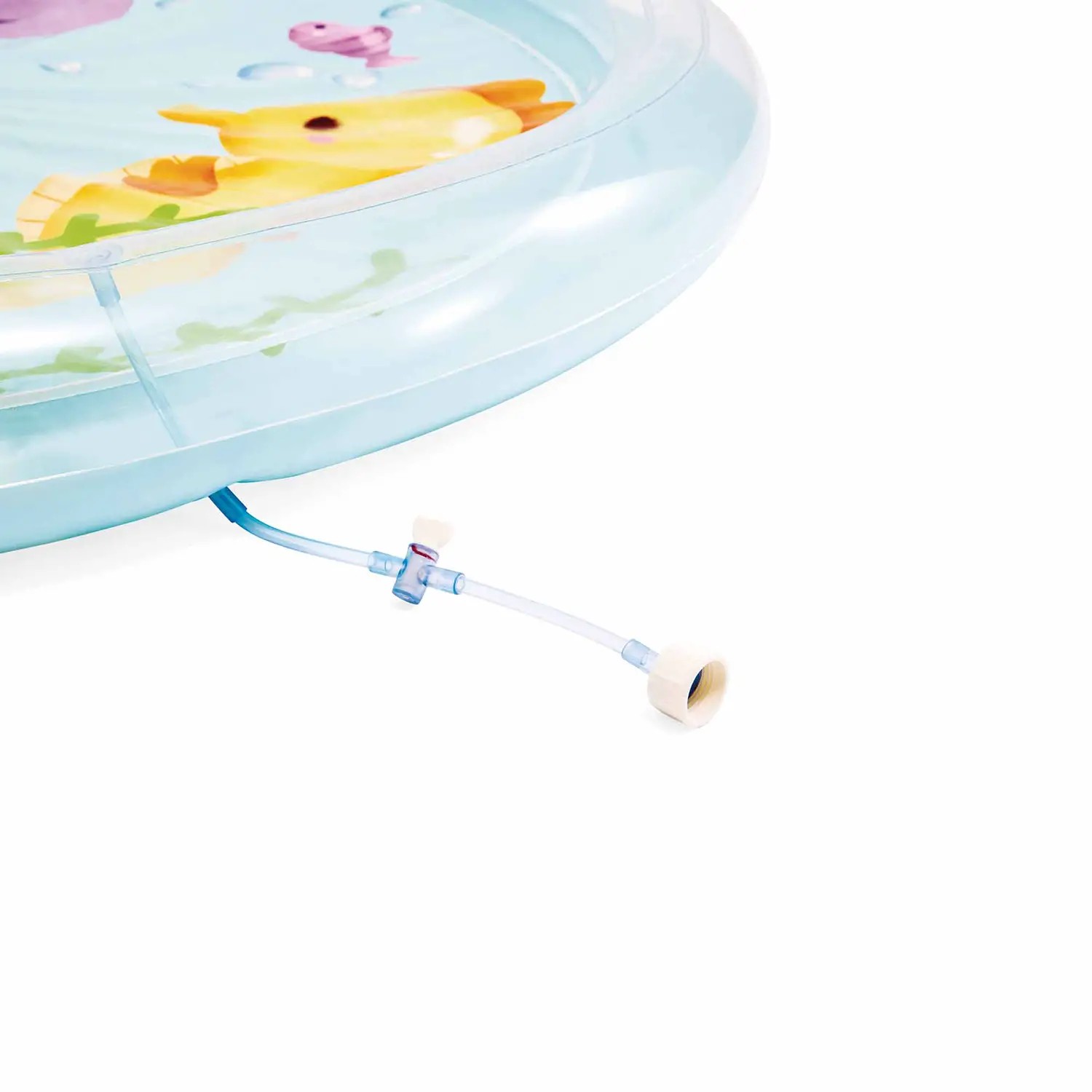 Dotata di un sistema di spruzzo d’acqua, crea un effetto cascata rinfrescante che rende l'esperienza ancora più divertente. Facile da gonfiare con una pompa a mano o un compressore, questa piscina è realizzata in PVC resistente, progettato per garantire una lunga durata e resistere all'usura del tempo.