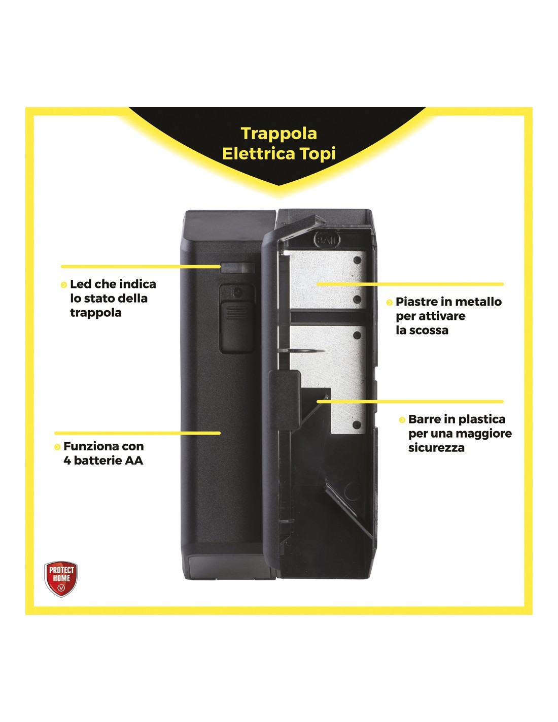 La trappola elettrica per topi Victor di Protect Home è una soluzione potente, innovativa e sicura per liberarsi dalle infestazioni di roditori senza l’utilizzo di sostanze chimiche. Grazie al suo sistema pratico e immediato, elimina i topi con una scarica elettrica rapida e risolutiva, offrendo la massima efficacia anche nelle situazioni più difficili. Facile da utilizzare, funziona semplicemente inserendo l’esca, accendendo la trappola e posizionandola nei punti strategici.