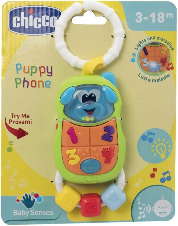 Chicco Trillino Telefono Del Cucciolo è un sonaglio elettronico pensato per stimolare i sensi e l'apprendimento dei bambini dai 3 ai 18 mesi. Con un design vivace e interattivo, questo giocattolo a forma di telefono offre una serie di caratteristiche che cattureranno l'attenzione del tuo piccolo.