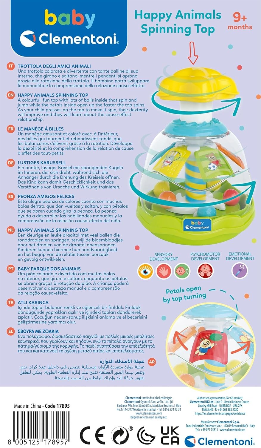 La trottola interattiva Clementoni è un centro attività pensato per stimolare i sensi e la manualità dei più piccoli, rendendo ogni momento di gioco divertente e formativo. Grazie al suo meccanismo semplice e coinvolgente, cattura subito l’attenzione del bambino favorendo lo sviluppo delle prime abilità motorie.
