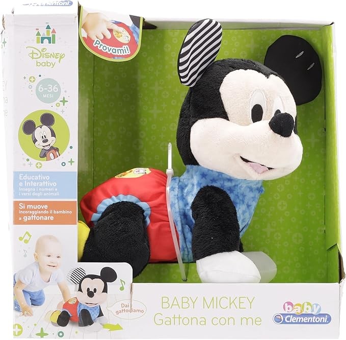 Il Clementoni Disney Baby Mickey Gattona con Me è un peluche interattivo che unisce il divertimento all'apprendimento per i neonati. Questo tenero Baby Mickey non è solo un adorabile compagno di gioco, ma anche un centro attività educativo con due tasti interattivi. Premendoli, il bambino può imparare i primi numeri e i versi degli animali in maniera facile e coinvolgente. Baby Mickey gattona davvero, incoraggiando il piccolo a imitarlo e a sviluppare le proprie capacità motorie. Realizzato con materiali di alta qualità, è un giocattolo sicuro e duraturo, ideale per accompagnare il bambino nei suoi primi passi nel mondo.